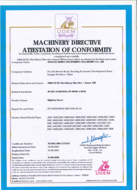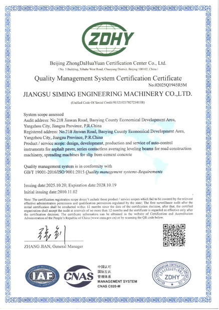 CHINA Jiangsu Siming Engineering Machinery Co., Ltd. Certificeringen
